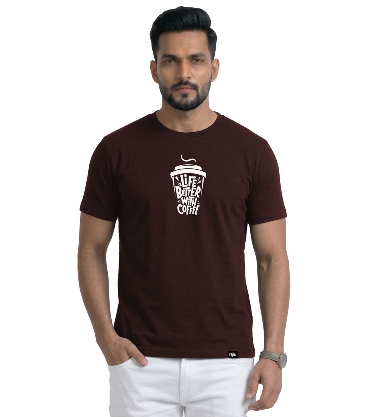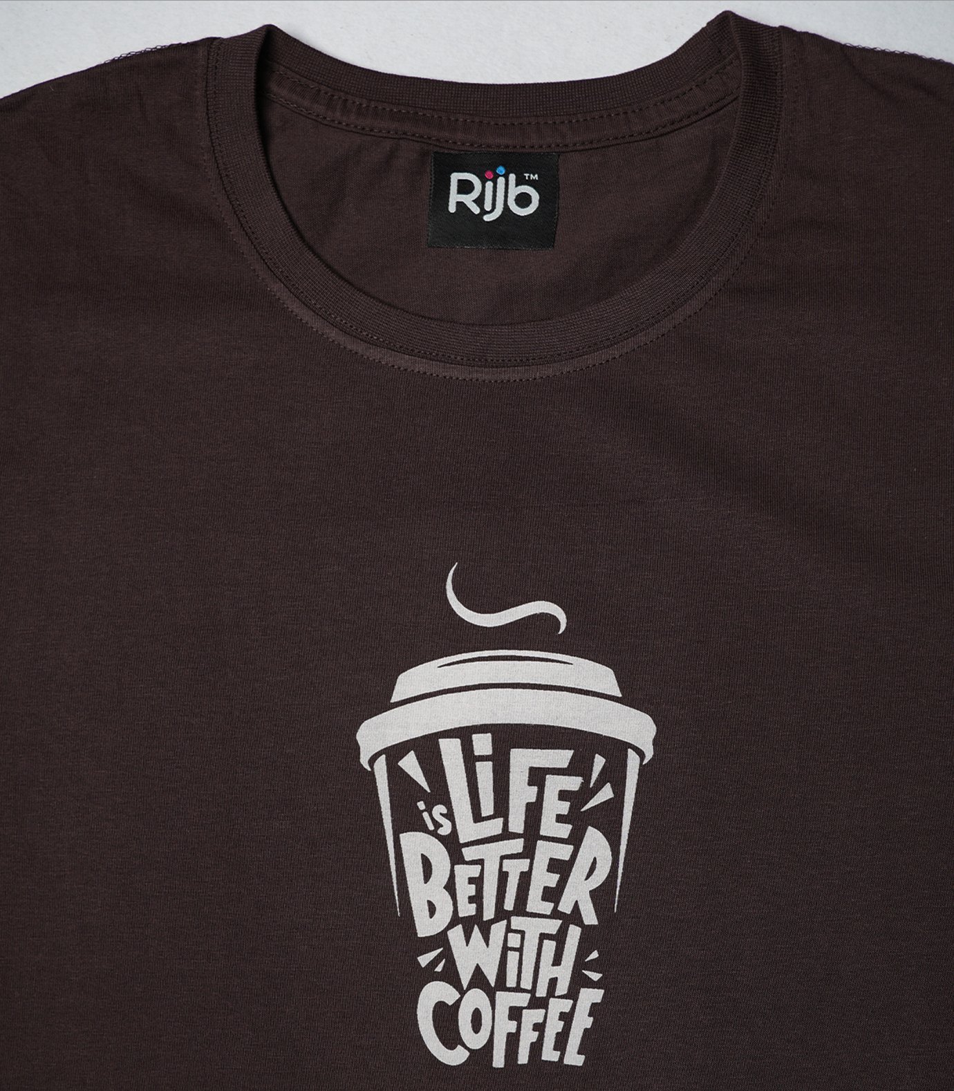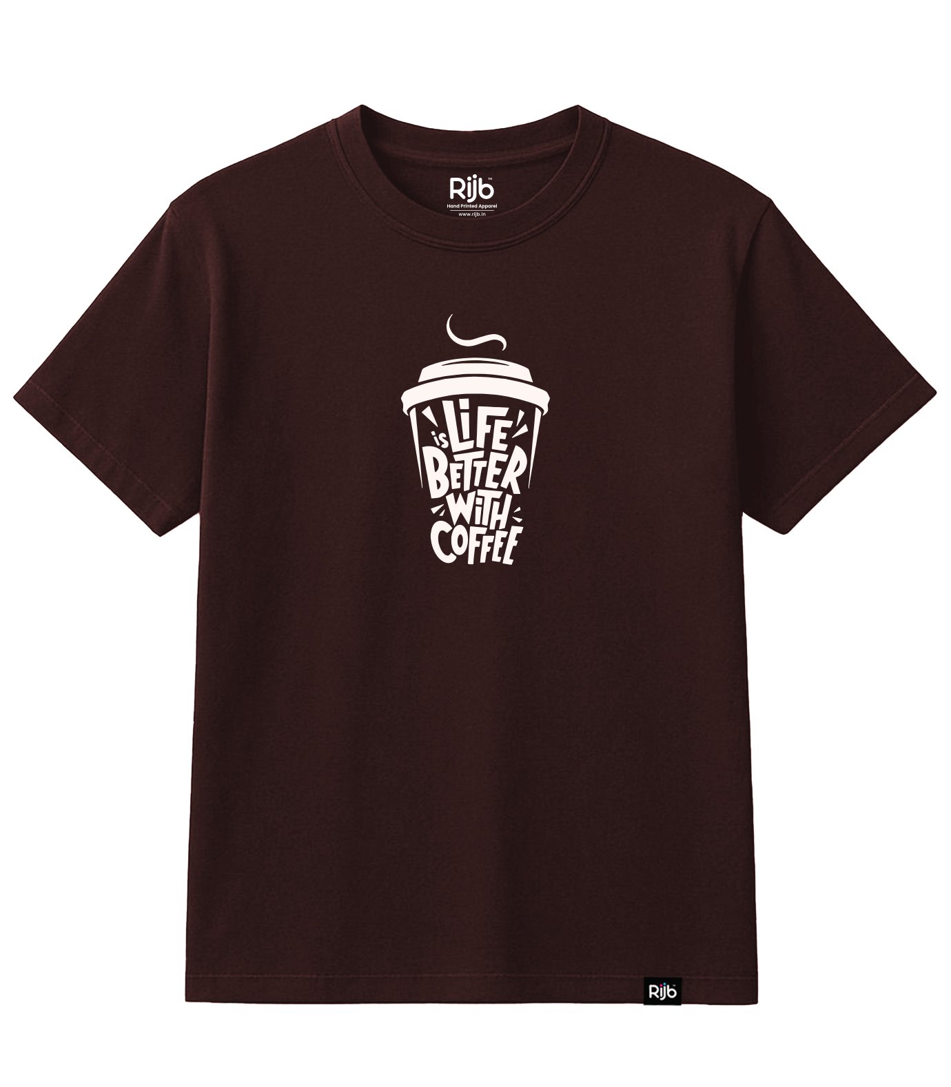 RIJB Coffee Brown Cotton T-Shirt with premium coffee print. Soft 180 GSM cotton, breathable, pre-shrunk, and colourfast for daily comfort.