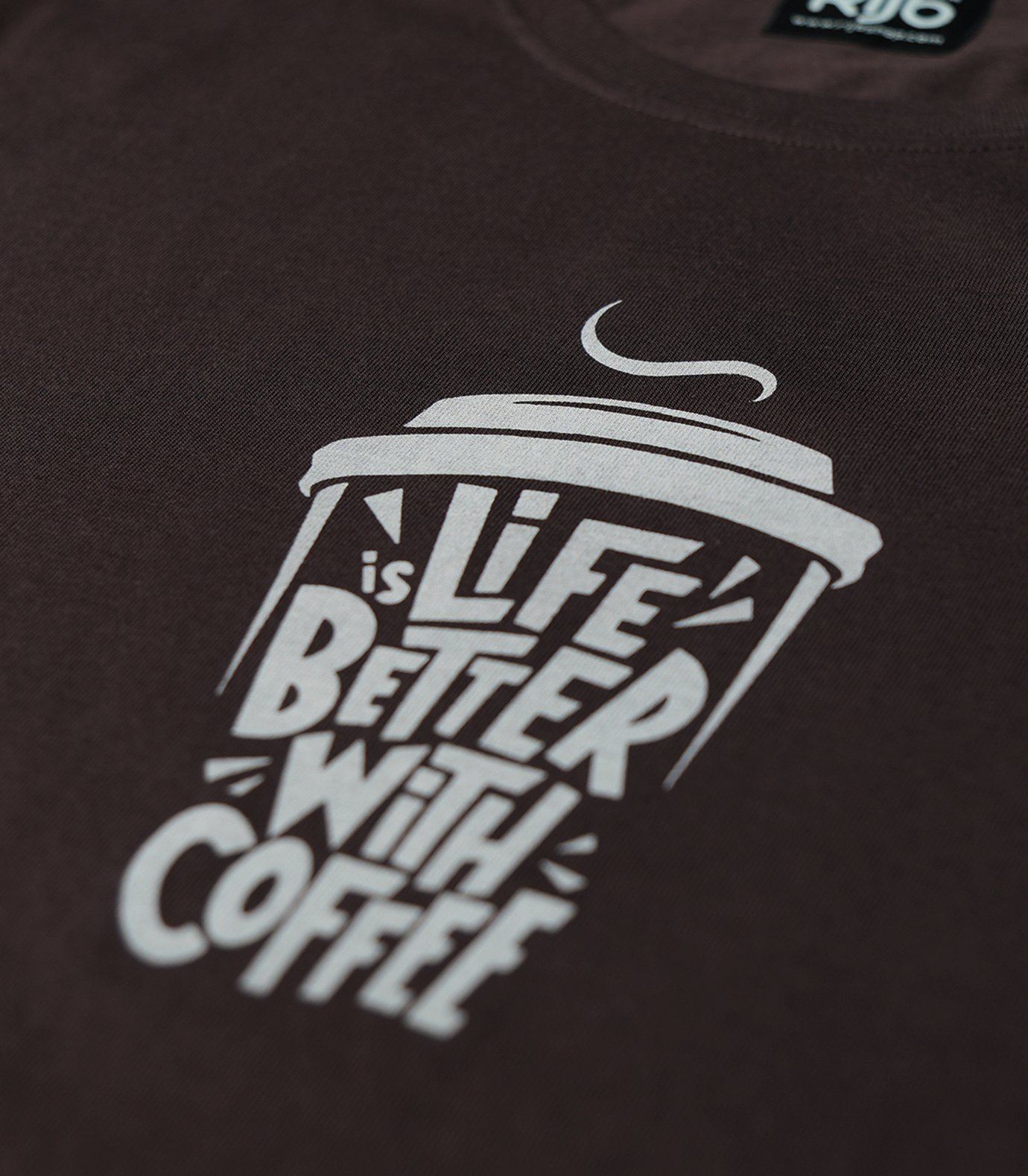 RIJB Coffee Brown Cotton T-Shirt with Premium Coffee Print