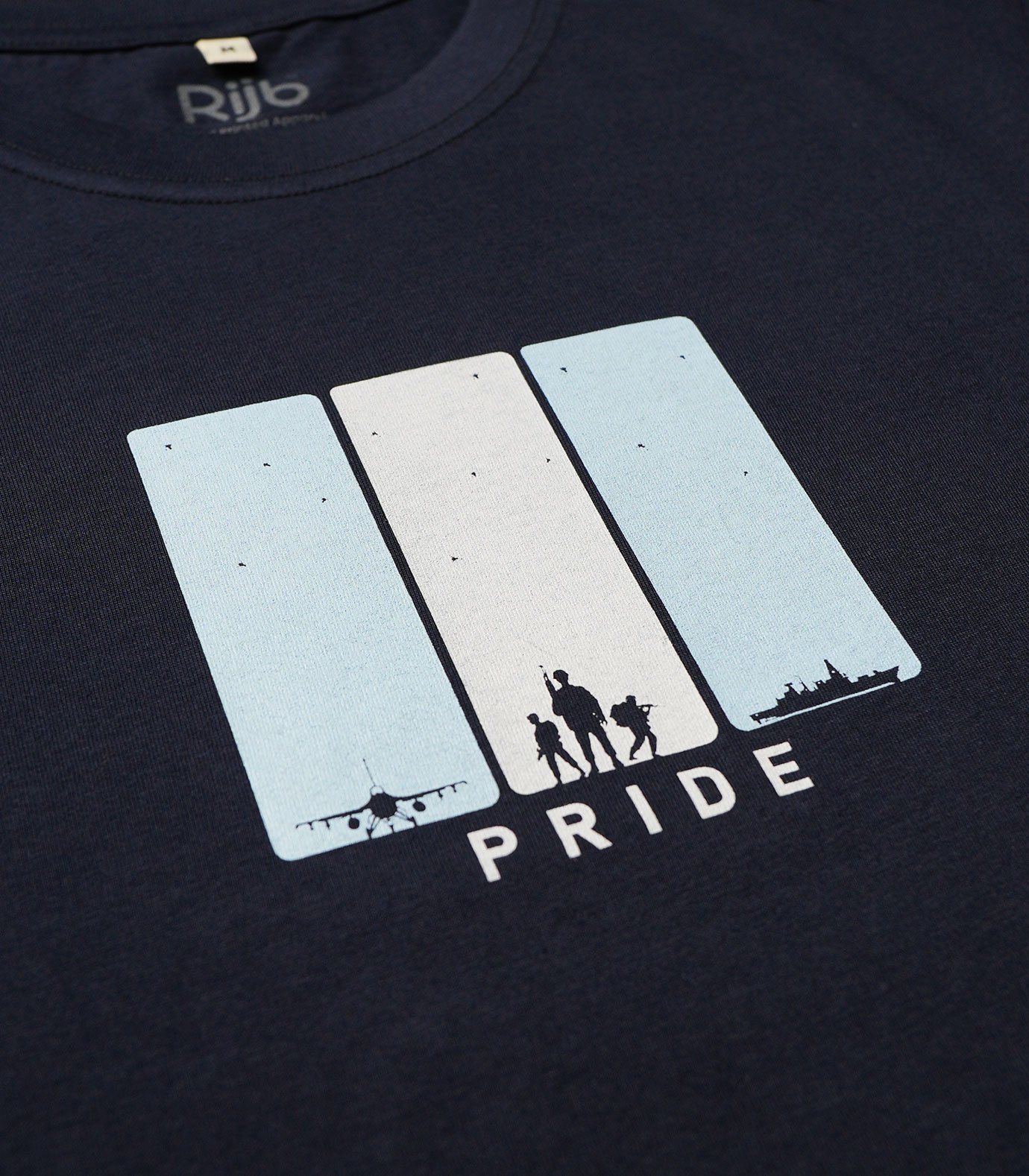 RIJB Tri-Forces T-Shirt featuring Airforce, Army & Navy graphic. 180 GSM cotton, hand screen printed, breathable, durable, and built for everyday wear. Limited batch.